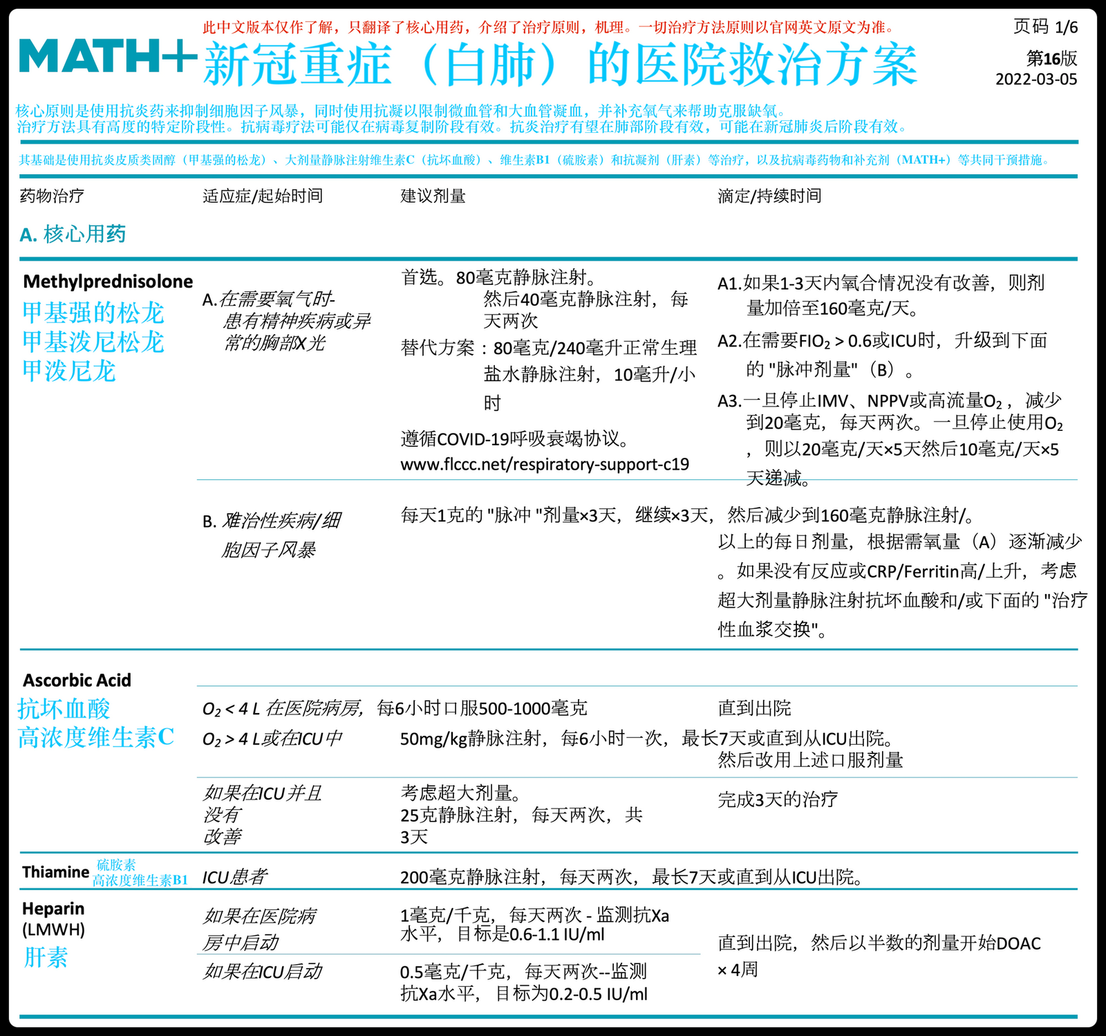 以下中文版本仅作为基本了解,仅翻译了核心用药,介绍了治疗原则及机理。一切治疗方法原则以官网英文原文为准(可查看下方PDF链接)。