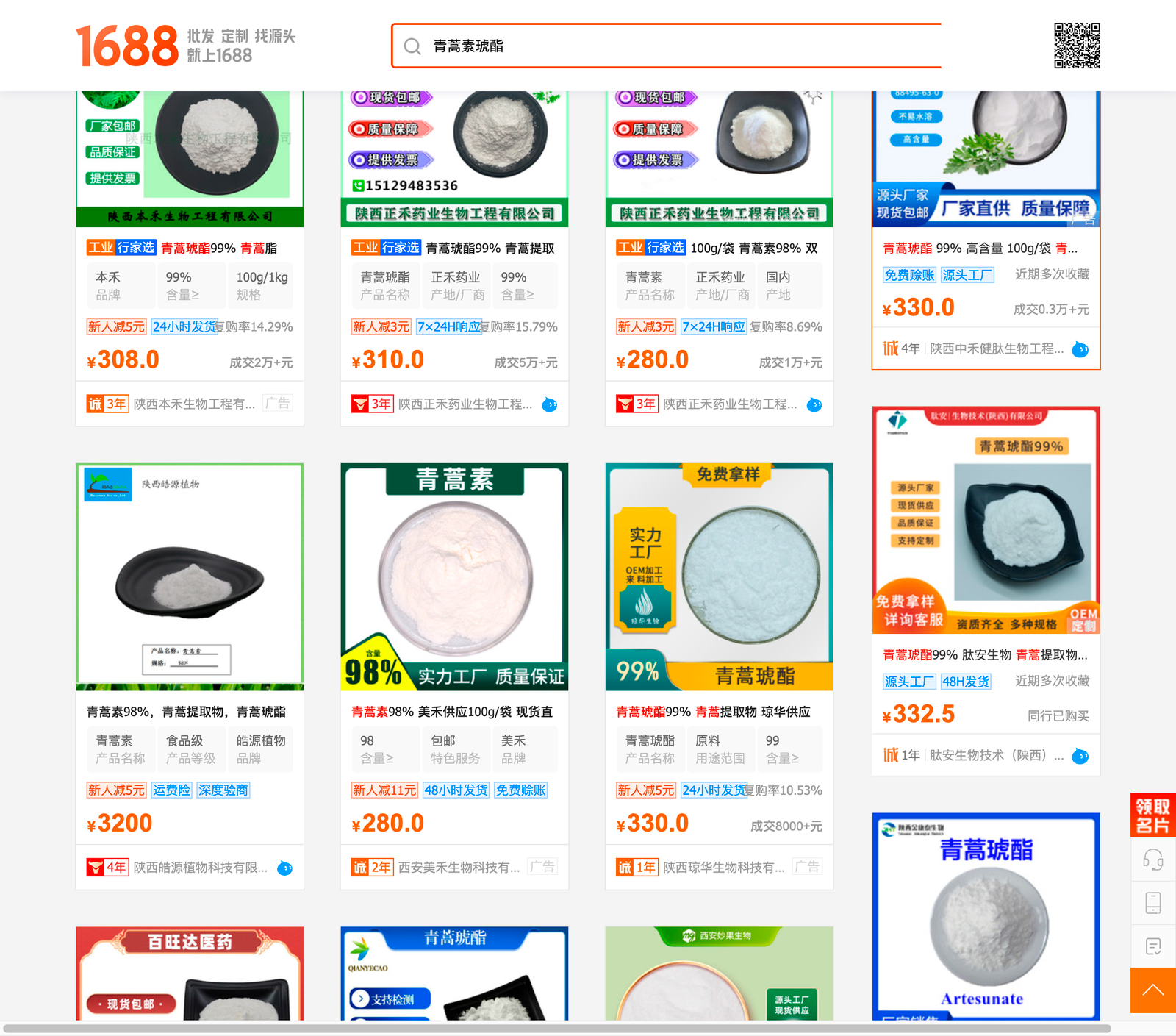 答:青蒿素为原始提取物,生物利用度不高,低于20%。所以治疗效果有限,用于保健为佳。青蒿素提取物在阿里巴巴或1688上均可以购买到,但要注意确认其真伪。