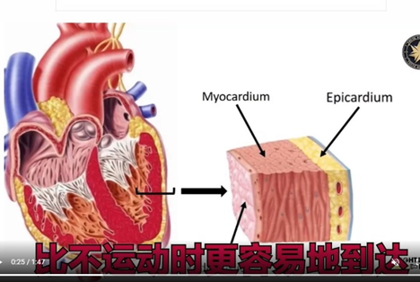 其基本原理是:每当运动时,心脏活动就会加剧膨胀与收缩,于是心脏组织结构原本是紧密的连接处会出现空间,疫苗中的用脂质做了表面改性处理的,携带着基因组mRNA的氧化石墨烯纳米颗粒就会“趁虚而入”,比起不运动的人而言,越是运动量大的人,疫苗有效成分进入心脏的越多。而心脏外围细胞的外壁以及心脏血管壁外周细胞内膜里到处都有叫做ACE-2的受体(受体,又称受器、接收器,是生物化学概念,指任何能够同激素、神经递质、药物或细胞内信号分子结合并能引起细胞功能变化的生物大分子),疫苗中的mRNA是被锋利如刀片的氧化石墨烯携带着,它们割破细胞壁与受体结合,并且锋利如刀片的氧化石墨烯嵌在细胞上造成细胞不停地损伤出血,心肌炎症就发生了。如下图: